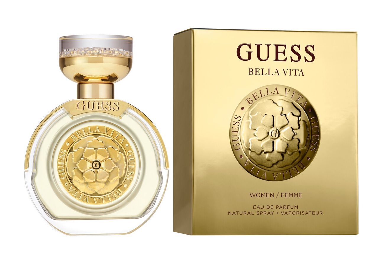 Guess Bella Vita è una fragranza che racconta una femminilità senza tempo, racchiusa in un elegante flacone in vetro impreziosito da dettagli in metallo dorato. Al centro risalta il logo della peonia, simbolo di Guess e della nuova fragranza Guess Bella Vita.